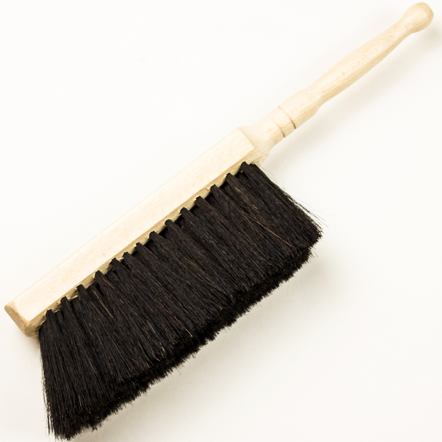 Das Holz vom Handfeger ist geschliffen und zu 50% mit feinem schwarzen Rosshaar bestückt.